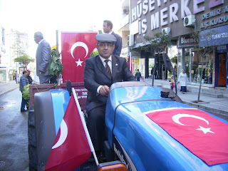 Ziraat odasının önünden dört traktörle giçit törenine katıldık.Biz arıcılarda çiftçiyiz ve tarım ürünlerini direk etkileyen milyonlarca işçimiz var çoğu kişi bilmesede