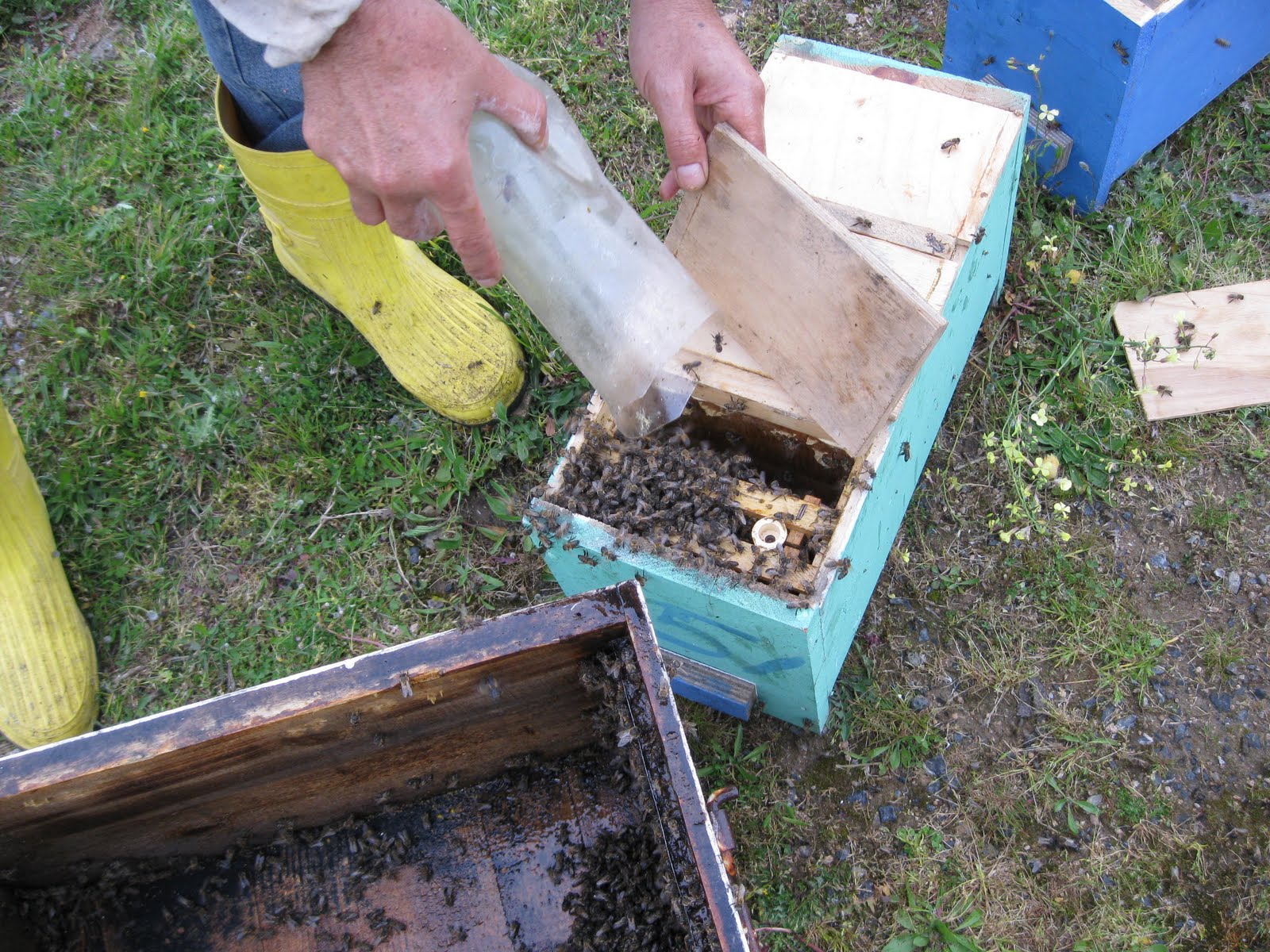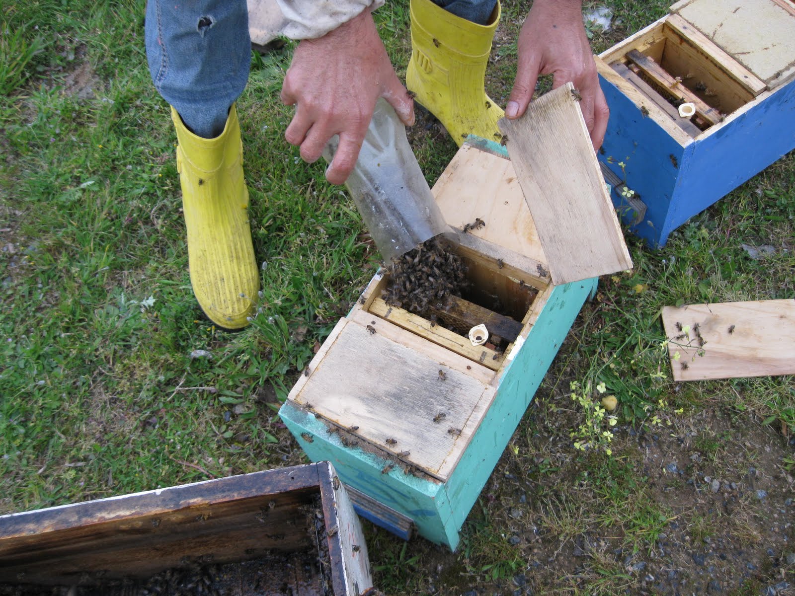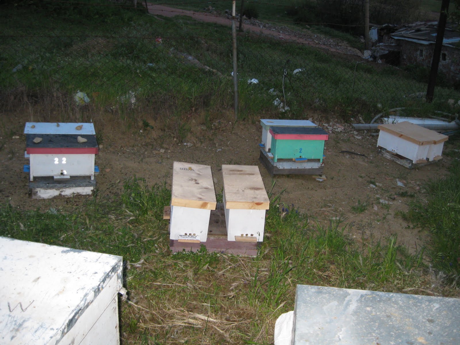 Arılığın yeni yüzü, anaarı çiftleştirme kutuları. Yeşil kutunun bize bakan yüzünde anaarıyı göremedim. Klasik sistem kayıt devrede. Üzerine bir taş koyuyorum gittigimde yeniden bakmak için.Arıcılık Bilgi Merkezi | 13 Yorum »