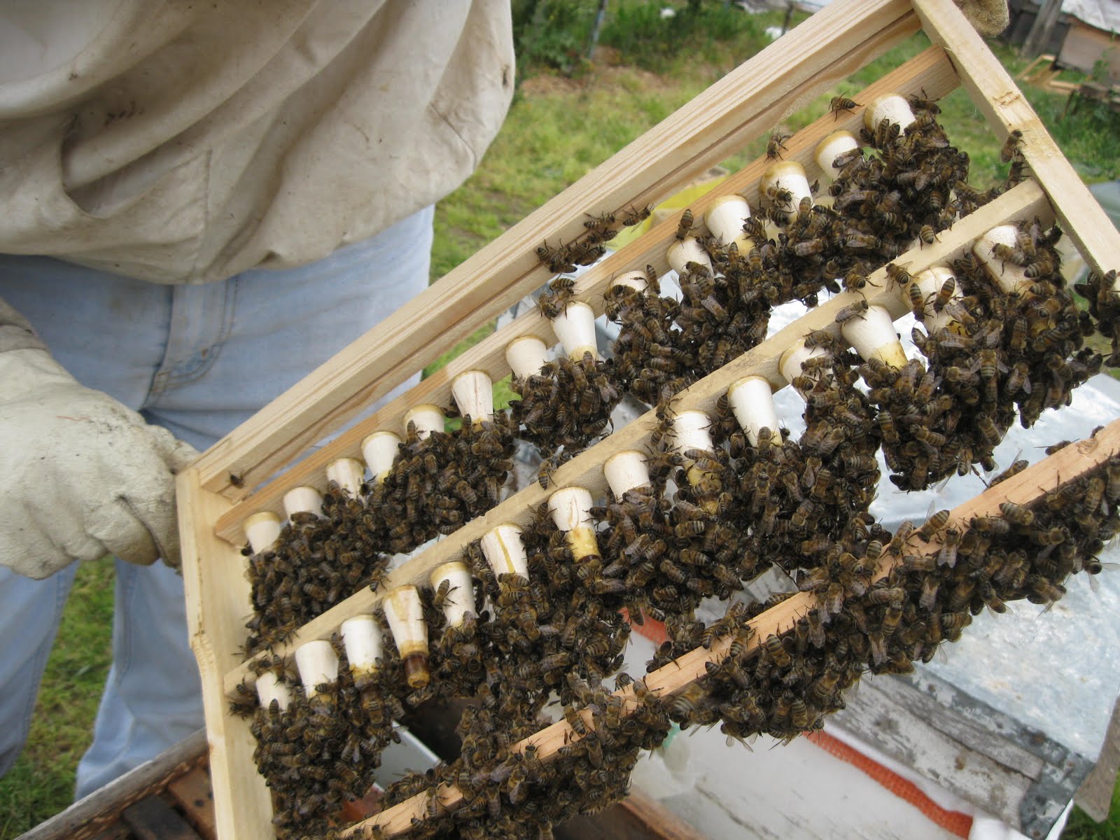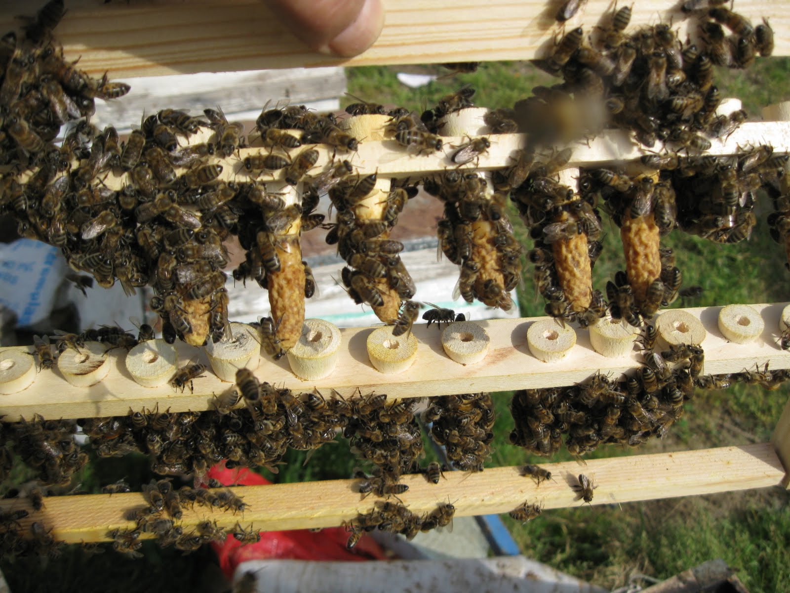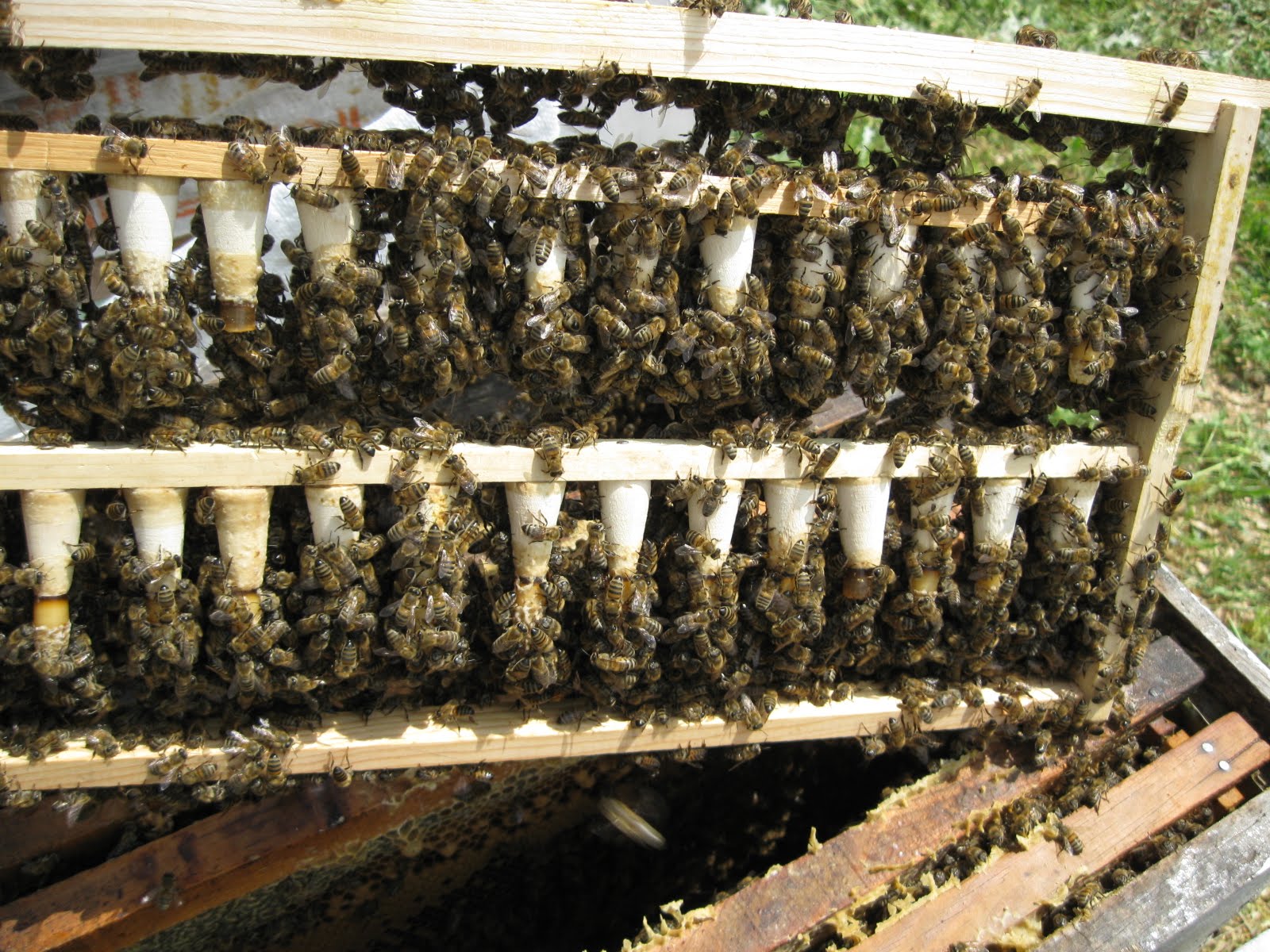 İlhami abi gider iken, Muğla’dan gelen kovanların birisine boş çıta atılmıştı, arıyıda biz bölünce erkek ve dişi yumurtalar var, haliyle meme başlamışlar, dünya arı sütü vardı, İlhami abi çıtadaki memeleri bozmadan alıp götürdü, arısütlerini evde sağacakmış.