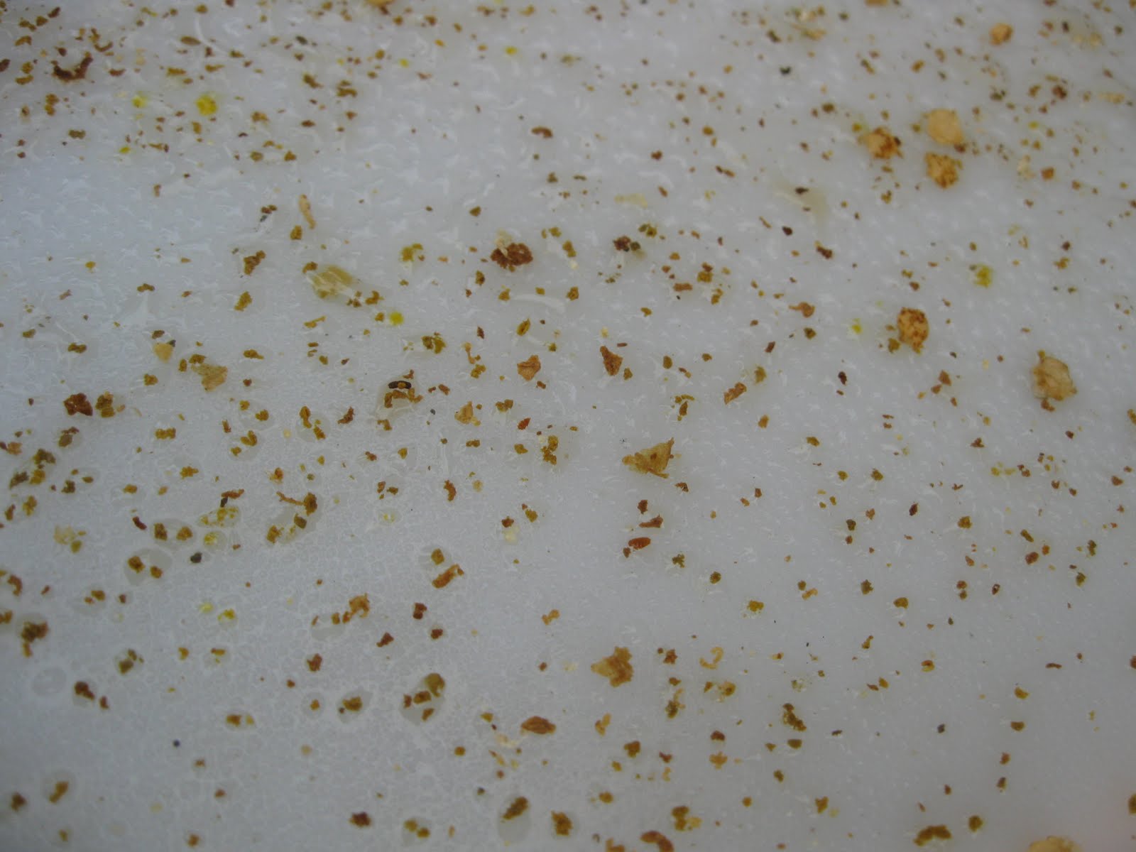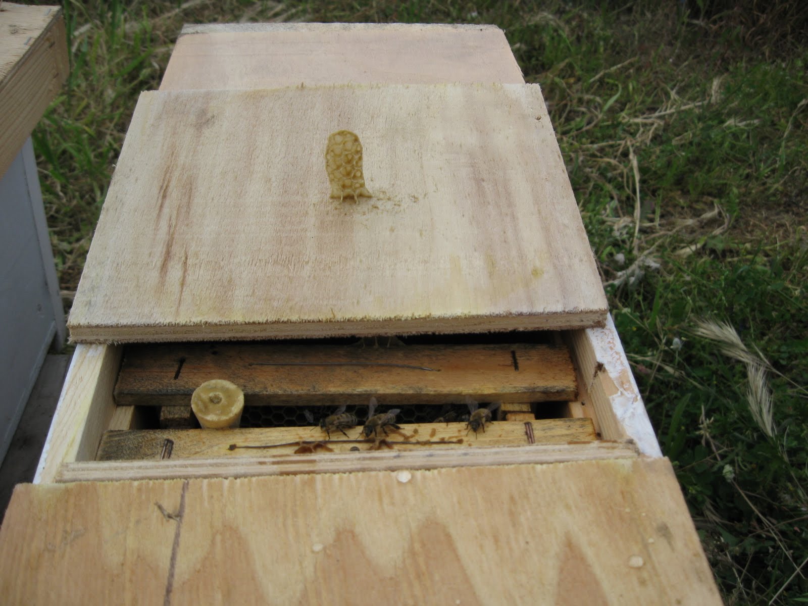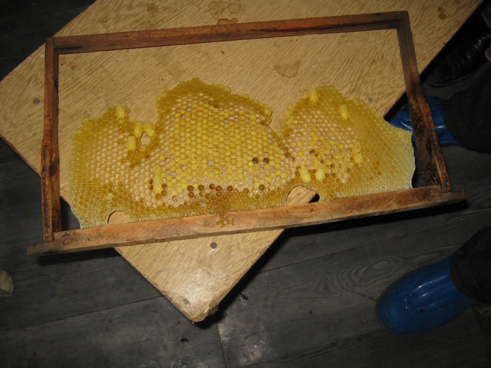Birde rutubet aşagıda böyle birikiyor. Kovanın sağ tarafında bir eski petek var arılar onu söküyor, içine bakmadım ama aşagıya düşenlerden analadığım bu.