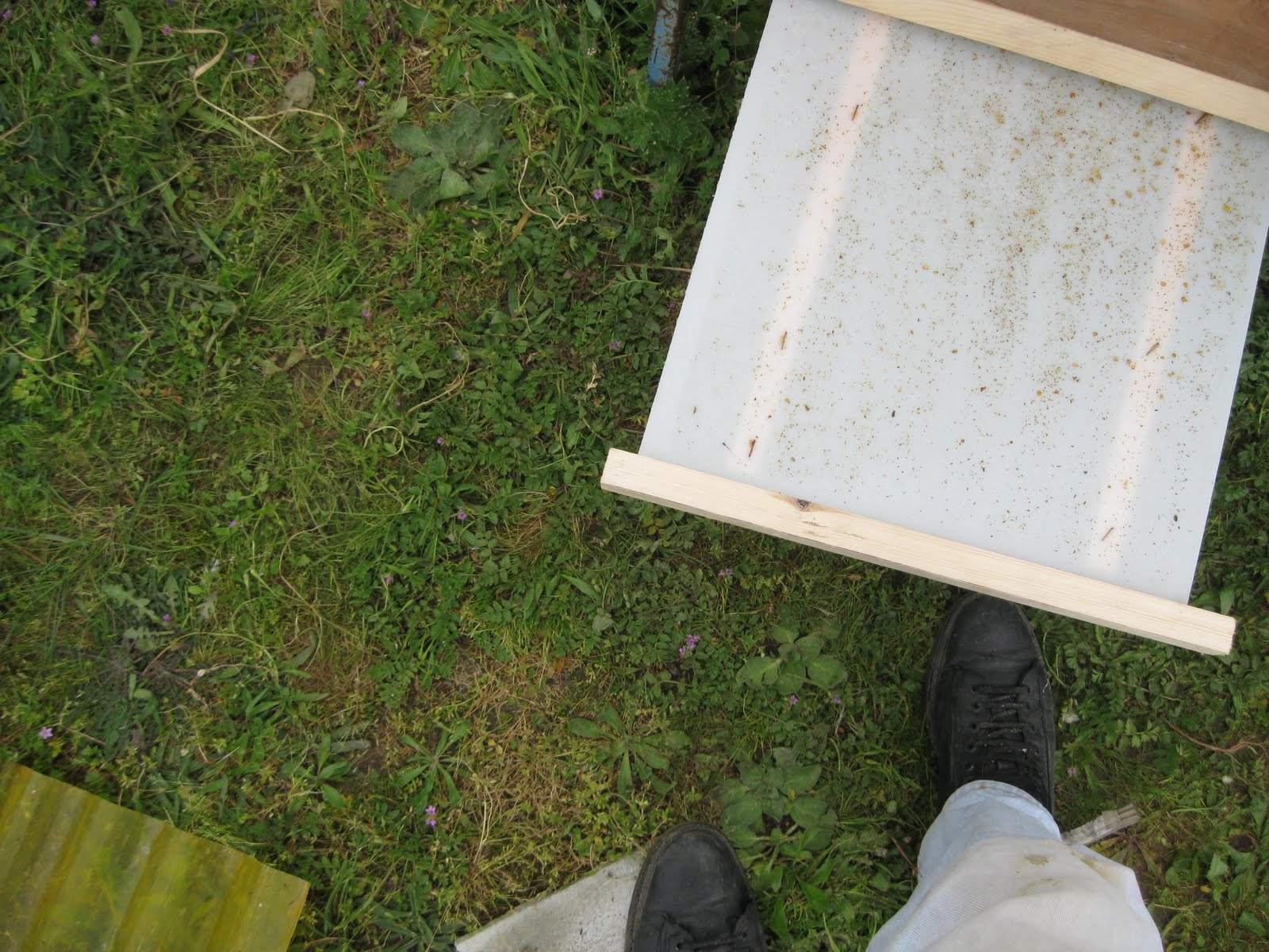 Denemek için koydugumuz anti varroa altlık ve izlenimlerim. Bu altlık geçtiğimiz cumartesi kovana monte edilmişti.