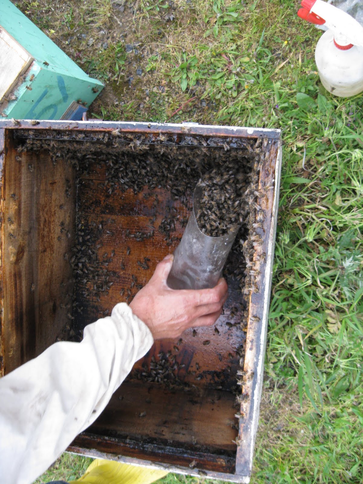 Pazar günü işlerimizin bitiminden sonra 18-19 kutuyu kontrol edip petekjlerine şurup dolduruyoruz.