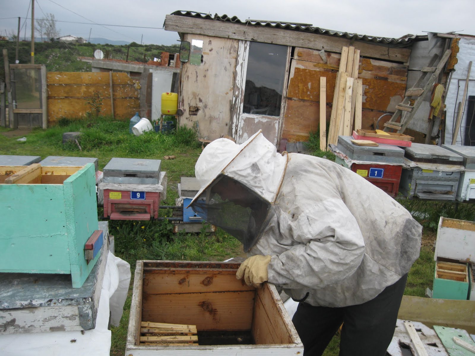 Cuma günü marangozdan çıkamadık,sadece Saim le arılığa gidip İsmail abinin kovanları yeni kovanlara aktarıp geri döndük.