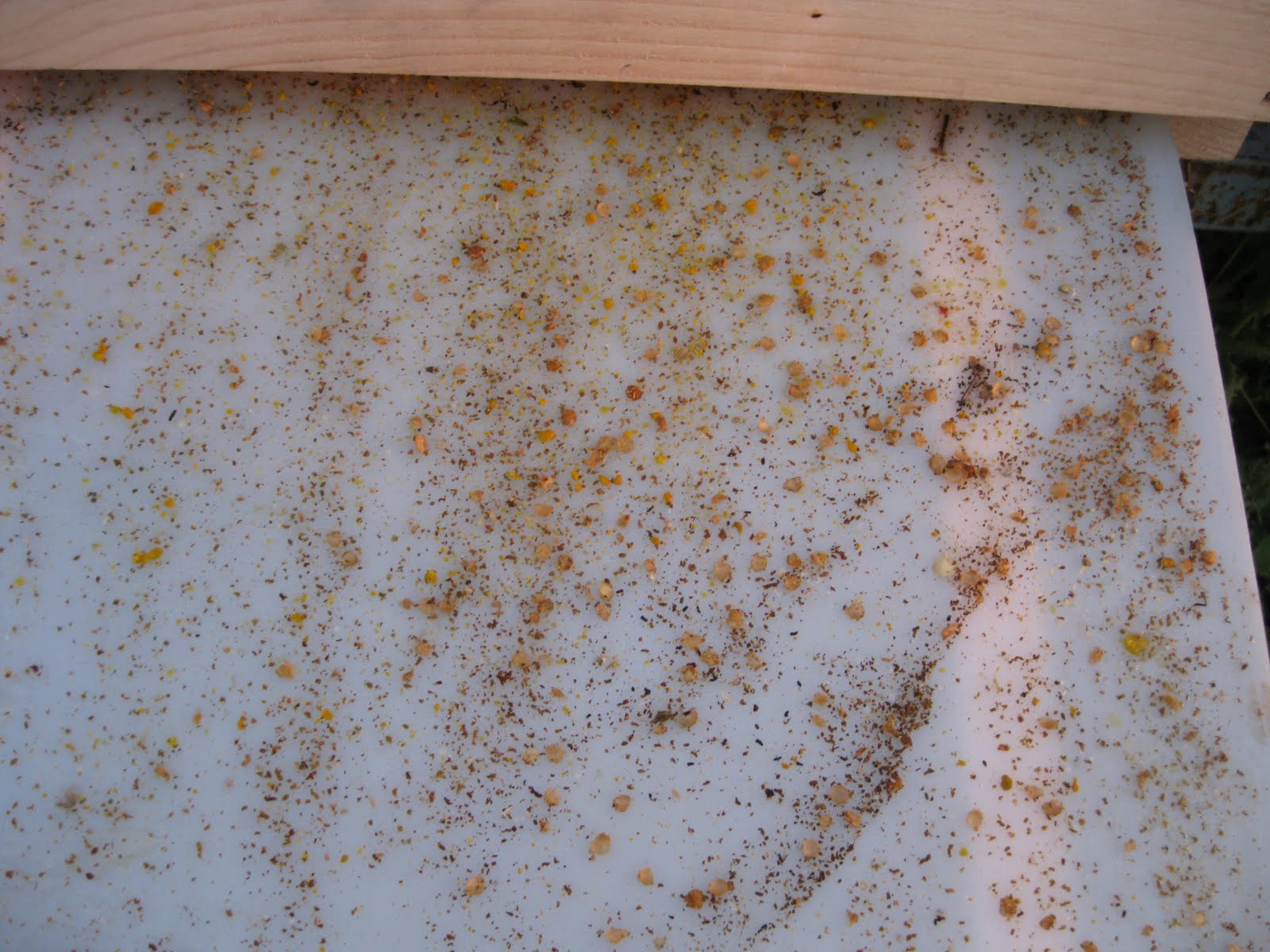 Tel altlıklı anti varroa sisteminden görüntü. 5 Gün içinde bu kadar pislik aşagıya düşüyor. Henüz hiç varroa düşmedi.