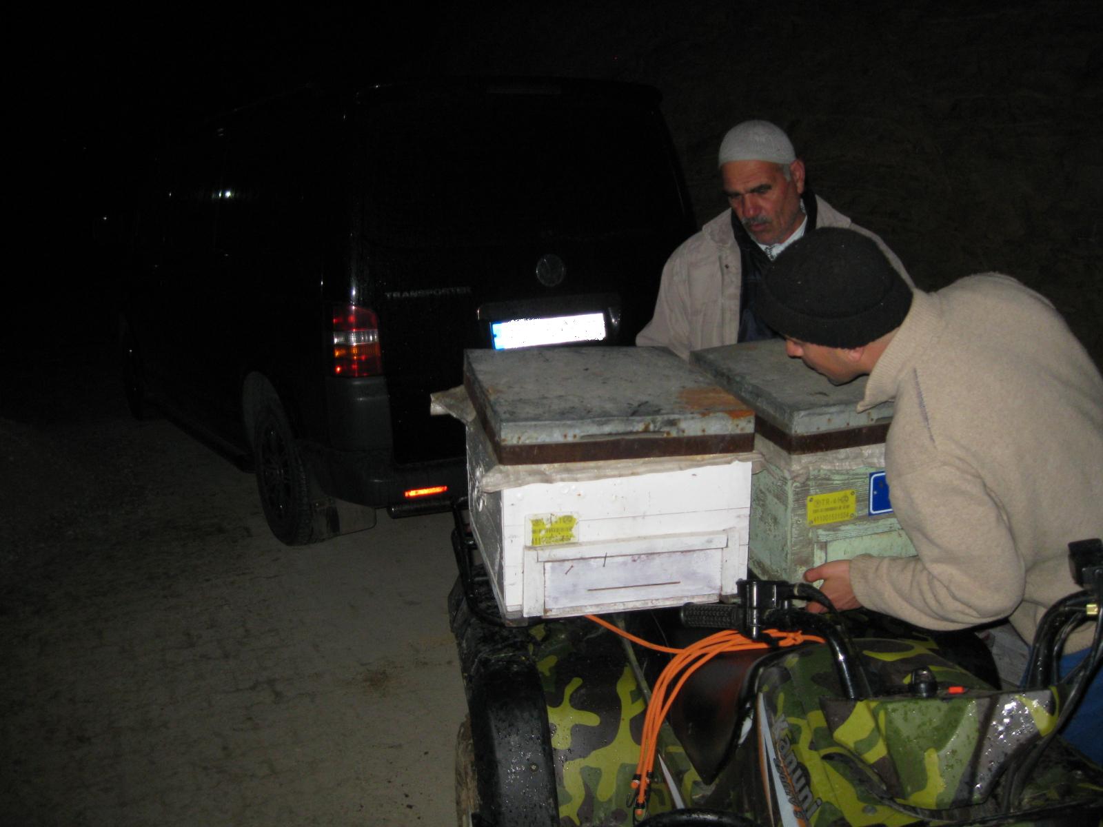Yemek faslı bitti, arıları Yusuf yeni yaptığı arılığa atm mi ne acayip bir motorla taşıdı. Arılar 5-6-7 çıtalık, ortalaması 6 çıta arılı kovan. Mayıs ayının onuna kadar atılmış yumurtalar kestane balında tarlacı olurlar.