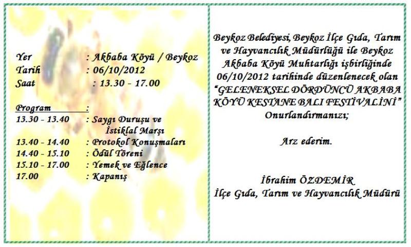 Ynt: BEYKOZ AKBABA KÖYÜ, KESTANE BAL FESTİVALİNE DAVET